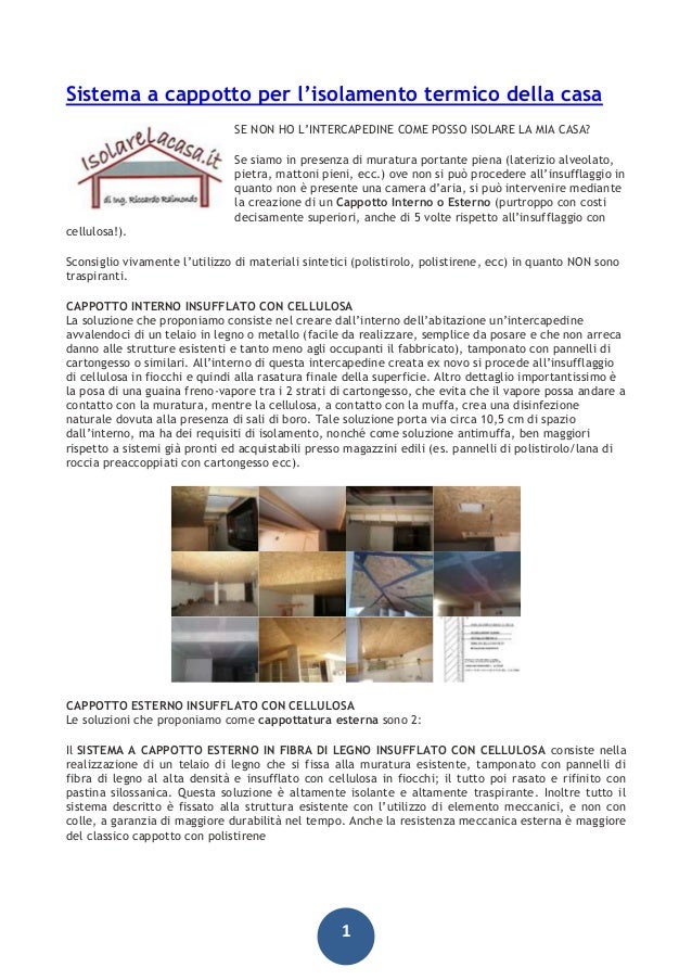 Da circa anni ho isolato la casa con un cappotto termico con polistirene di sp. In inverno, i muri protetti dal freddo esterno dal cappotto possono instaurare. Innanzitutto è definita anche isolamento esterno poiché si agisce sulla parete esterna dei muri perimetrali. Esternamente, infatti, dei pannelli di.